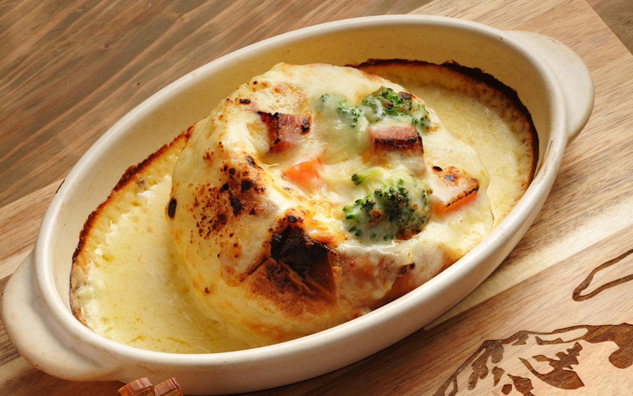 | おすすめメニューと価格 | 谷川岳パングラタン: 外はカリッと香ばしく、 中はとろーり熱々。高地で冷えた体を温めてくれる、 心も体も満たされる絶品グルメです。 |