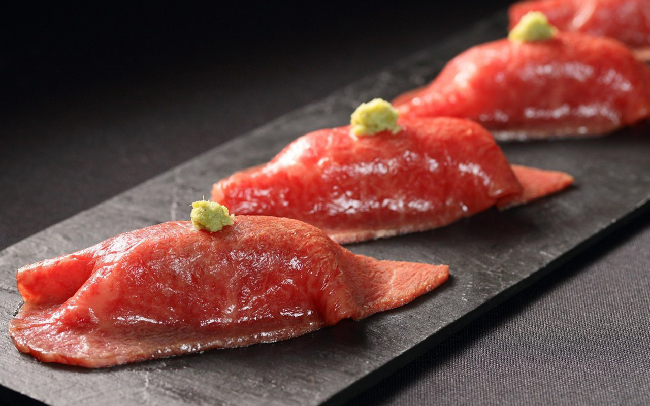 - A5和牛の炙り肉寿司(1貫 440円)とろける和牛の旨味と酢飯が絶妙にマッチする人気の一品。豊洲直送のウニをトッピング(別途料金)することも可能で、お子様から大人まで幅広く愛されています。