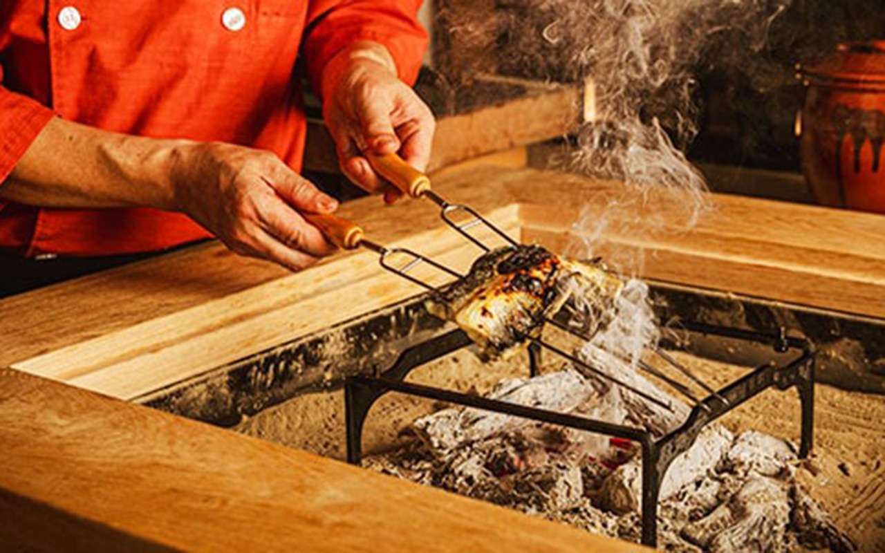 - 特別な個室: 接待や記念日に最適なテーブル個室(囲炉裏付き)を完備。シックで大人の雰囲気の中、大切な人と特別な時間を過ごせます。囲炉裏付き個室では炭火焼きメニューの提供となり、鉄板焼きメニューの場合は別途個室使用料がかかる場合があります。