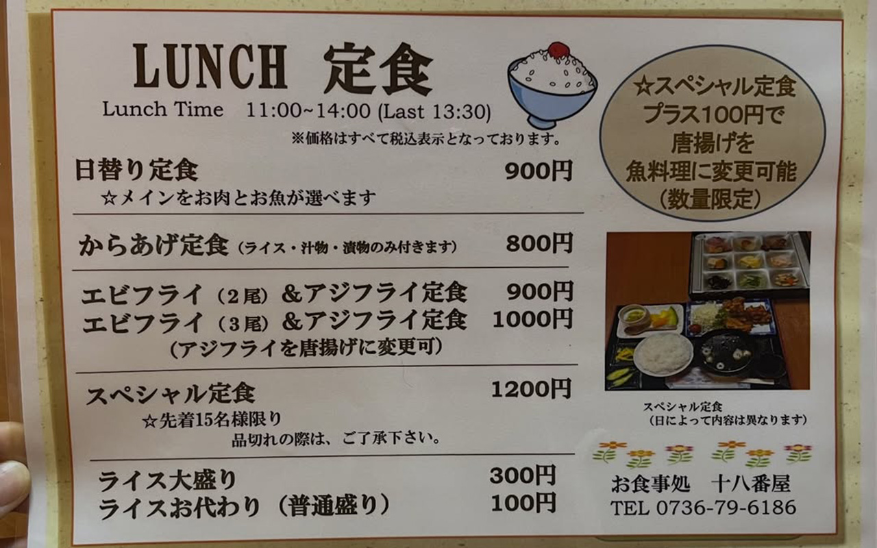 「お食事処 十八番屋(おはこや)」場所やアクセスは